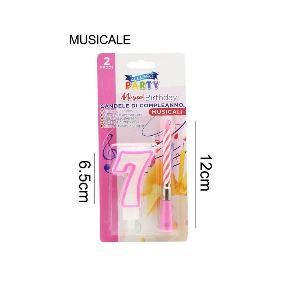 Candelina musicale per festa numero 7, colore rosa/bianco