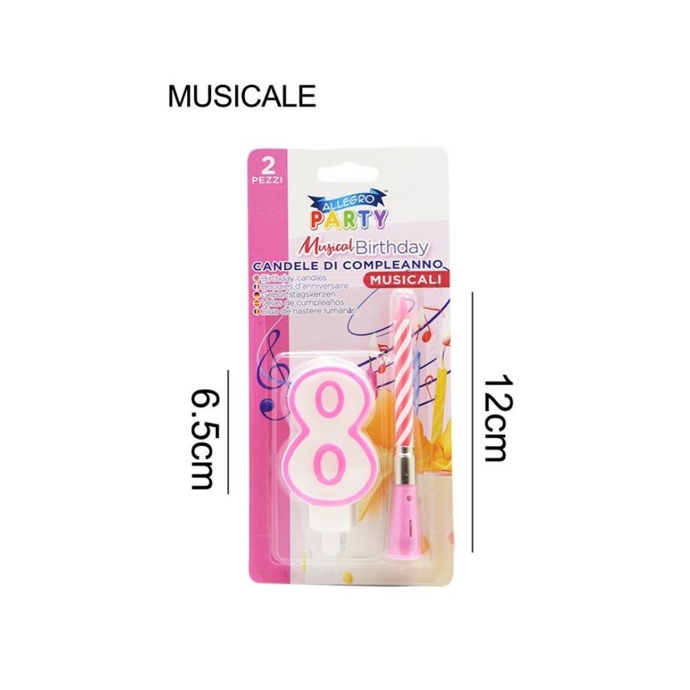 Candelina musicale per festa numero 8, colore rosa/bianco