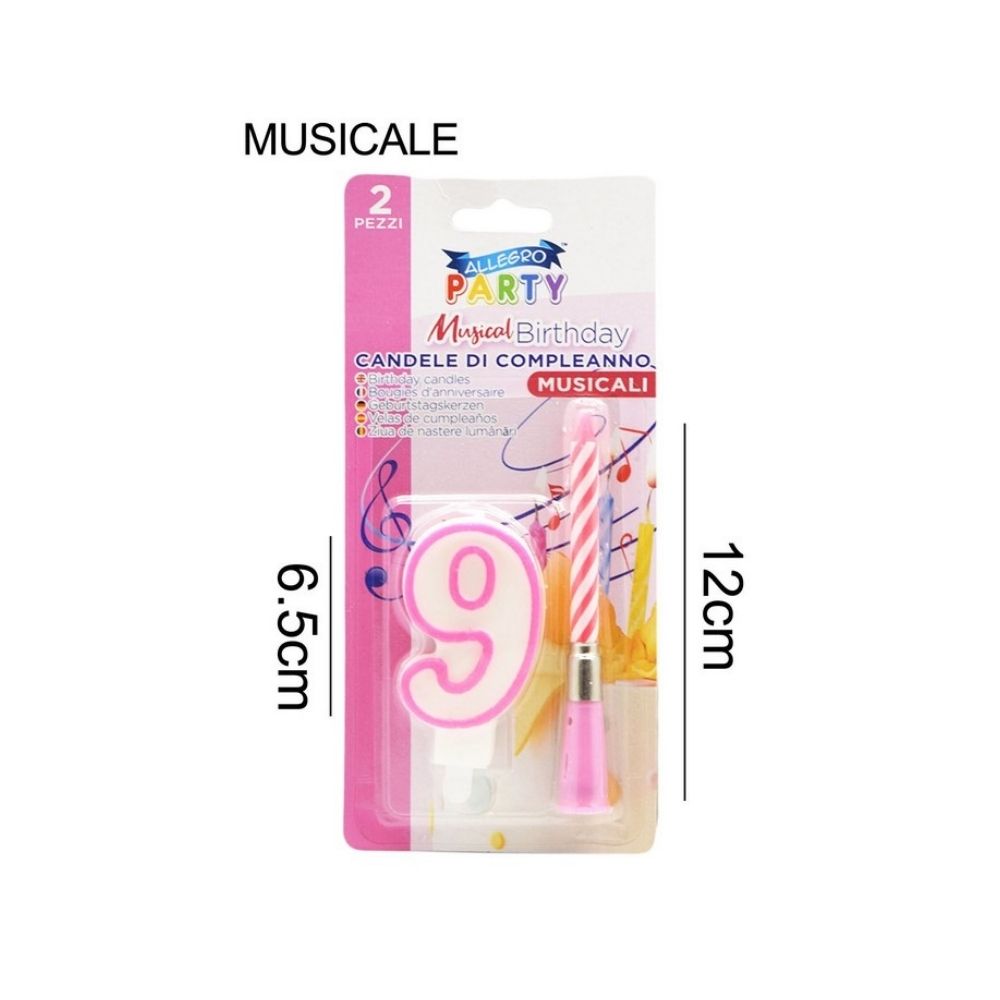 Candelina musicale per festa numero 9, colore rosa/bianco