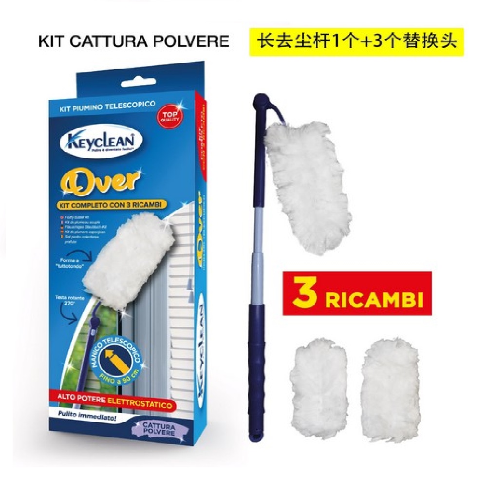 Kit cattuapolvere: 3 pz ricambio + manico pieghevole 90 cm