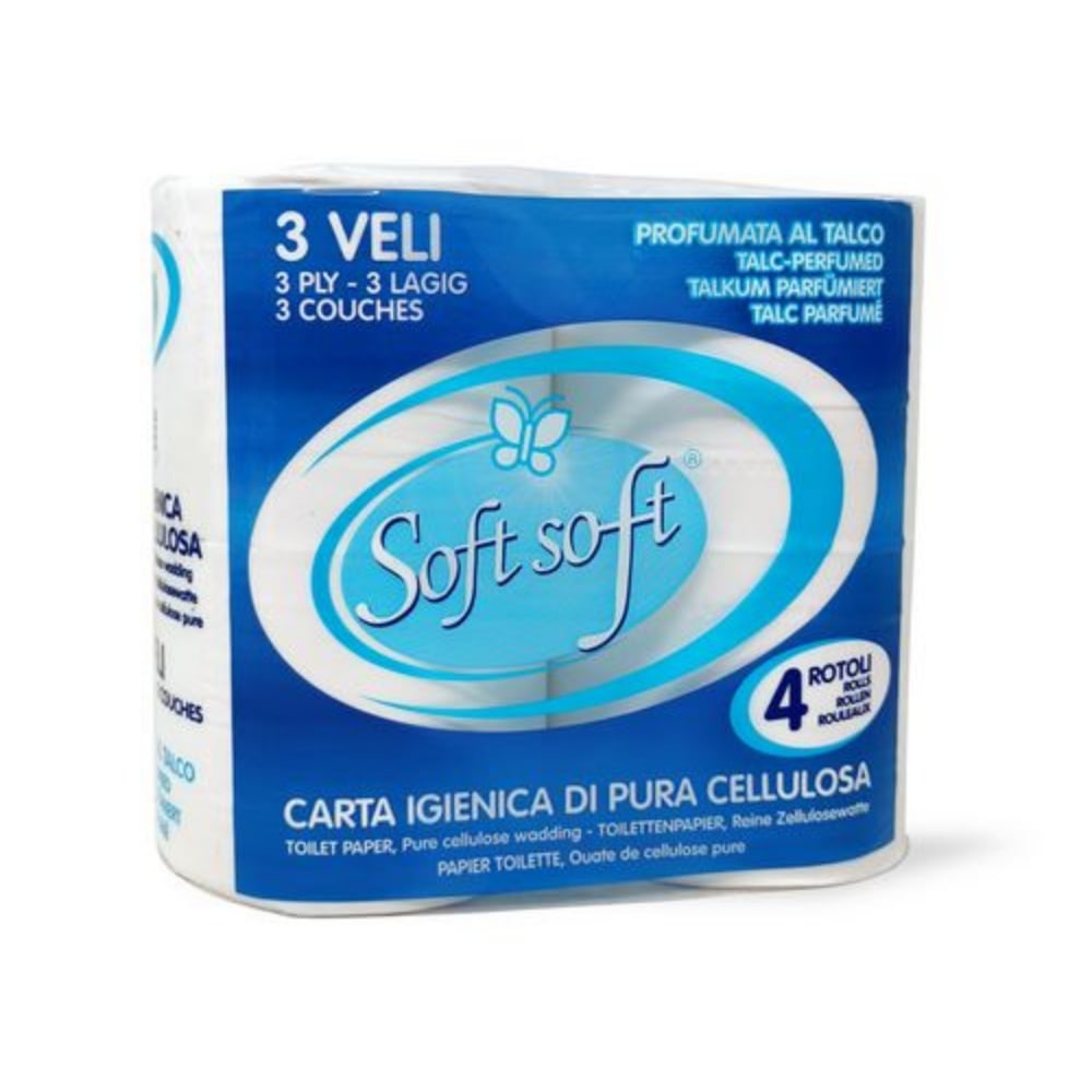 Carta Igienica 3 veli SOFT SOFT blu 4 rotoli, 500 gr.