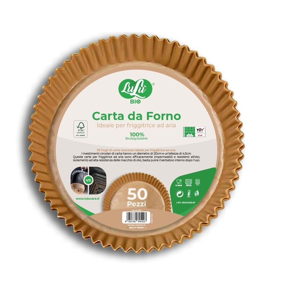 Carta da forno per friggitrice ad aria bio PRIMO rotonda, 50 pz
