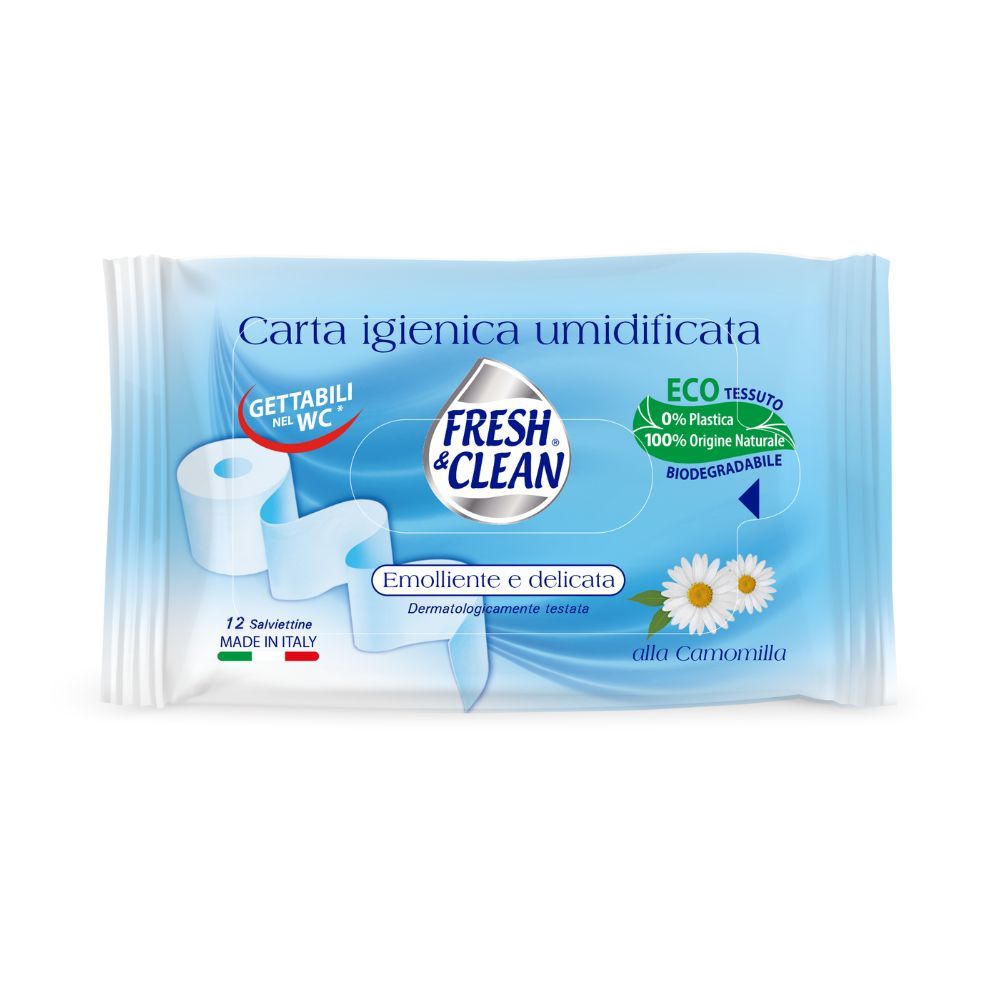 Carta igienica umidificata Fresh & Clean biodegradabile alla camomilla 12 pz