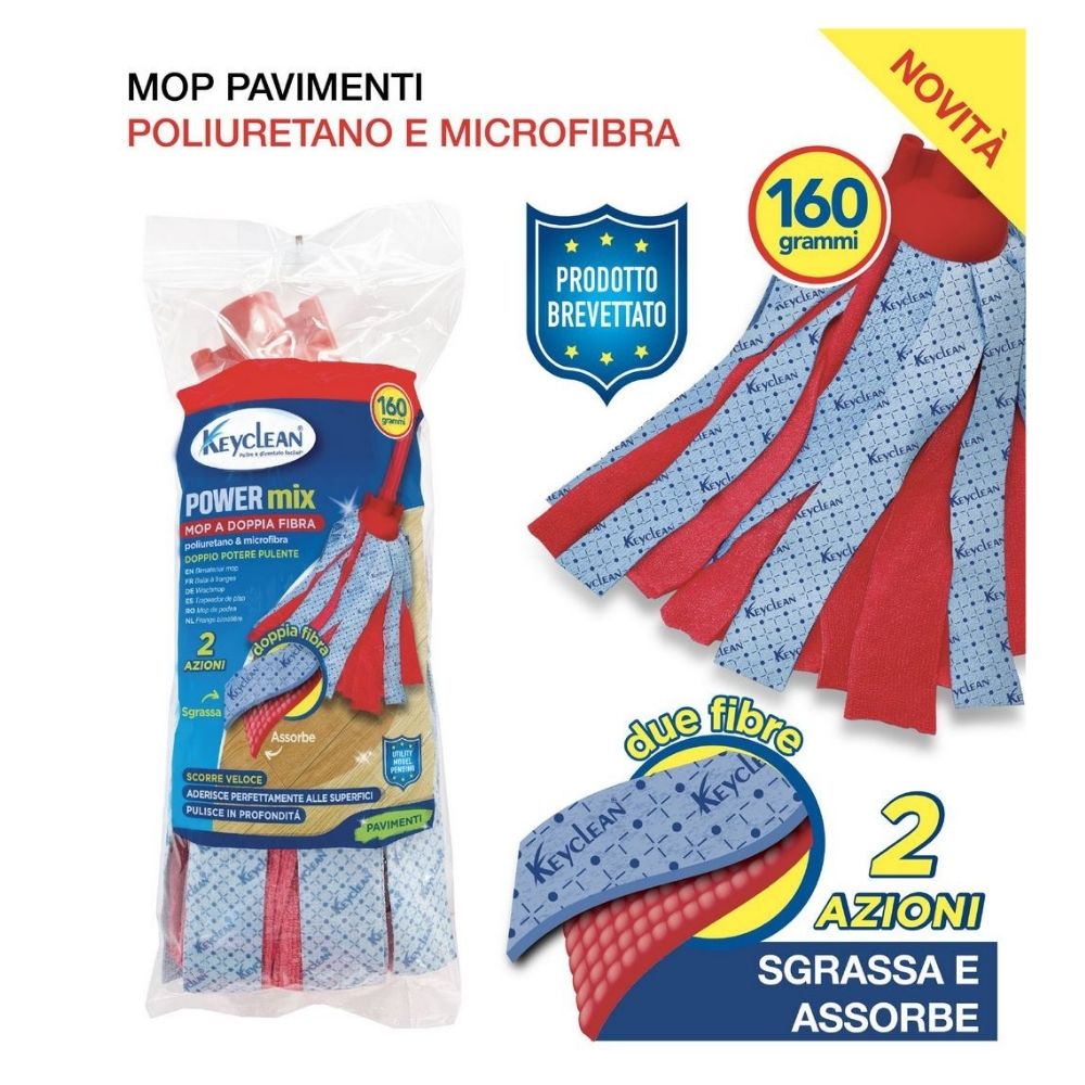 Mocio lavapavimenti con frange in Poliuretano e Microfibra, 160 gr.