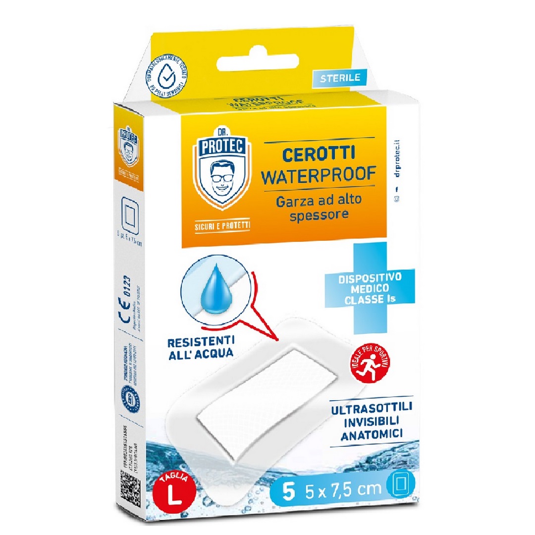 Cerotti impermeabili DR. PROTEC garza ad alto spessore 5 pz