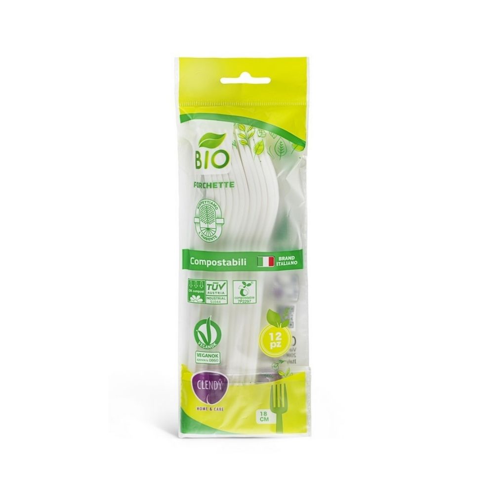Forchette compostabili CLENDY bianco, 12 pz.