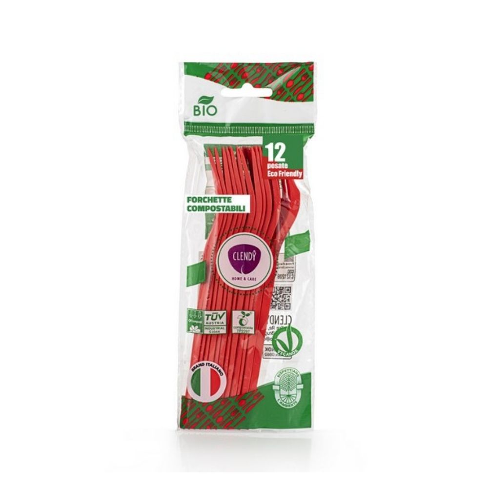 Forchette compostabili CLENDY rosse, 12 pz.