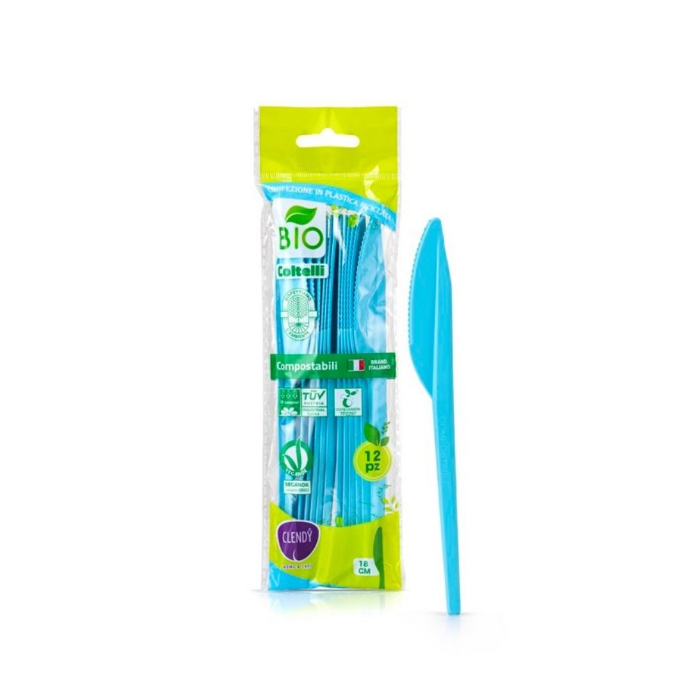 Coltelli compostabili CLENDY azzurri, 12 pz.