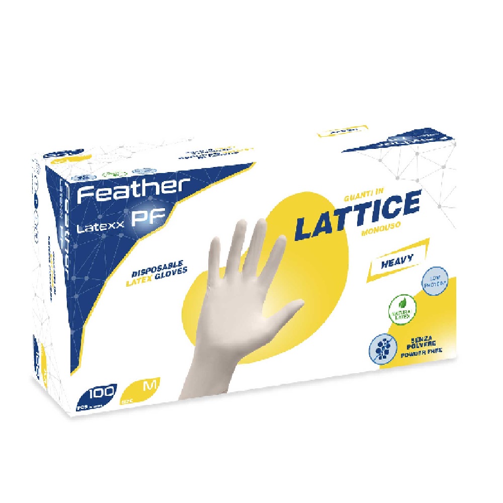 Guanti in lattice senza polvere FEATHER LATEXX, taglia M, 100 pz