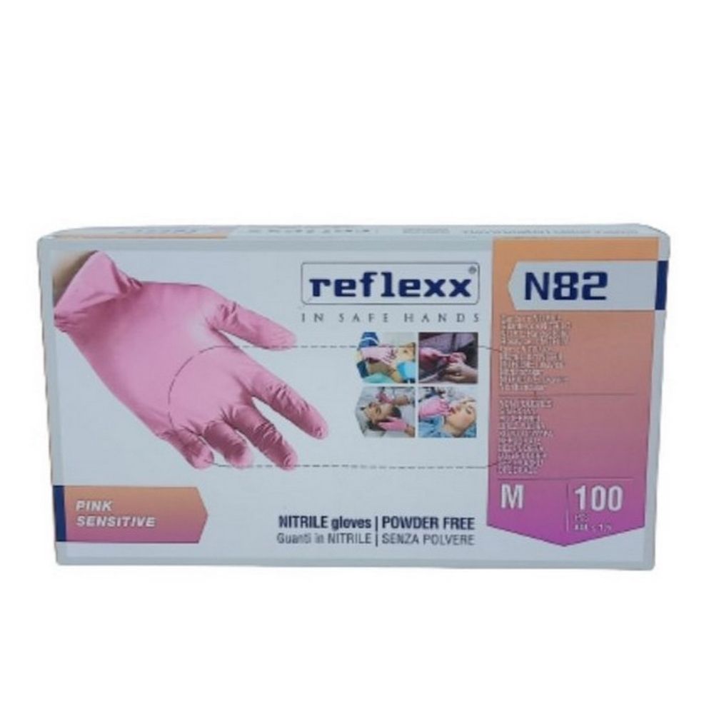 Guanti in nitrile senza polvere rosa REFLEXX, taglia M, 100 pz
