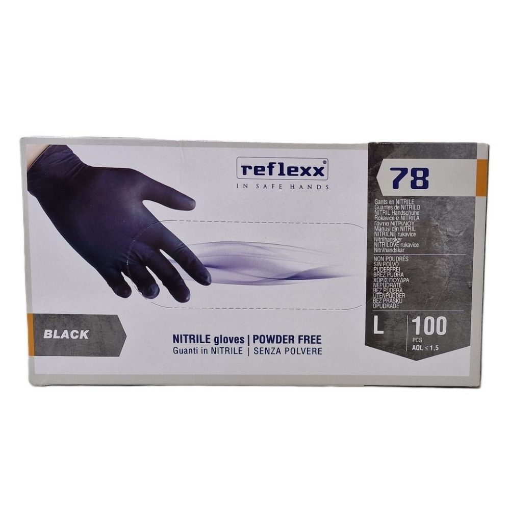 Guanti in nitrile senza polvere nero REFLEXX, taglia L, 100 pz