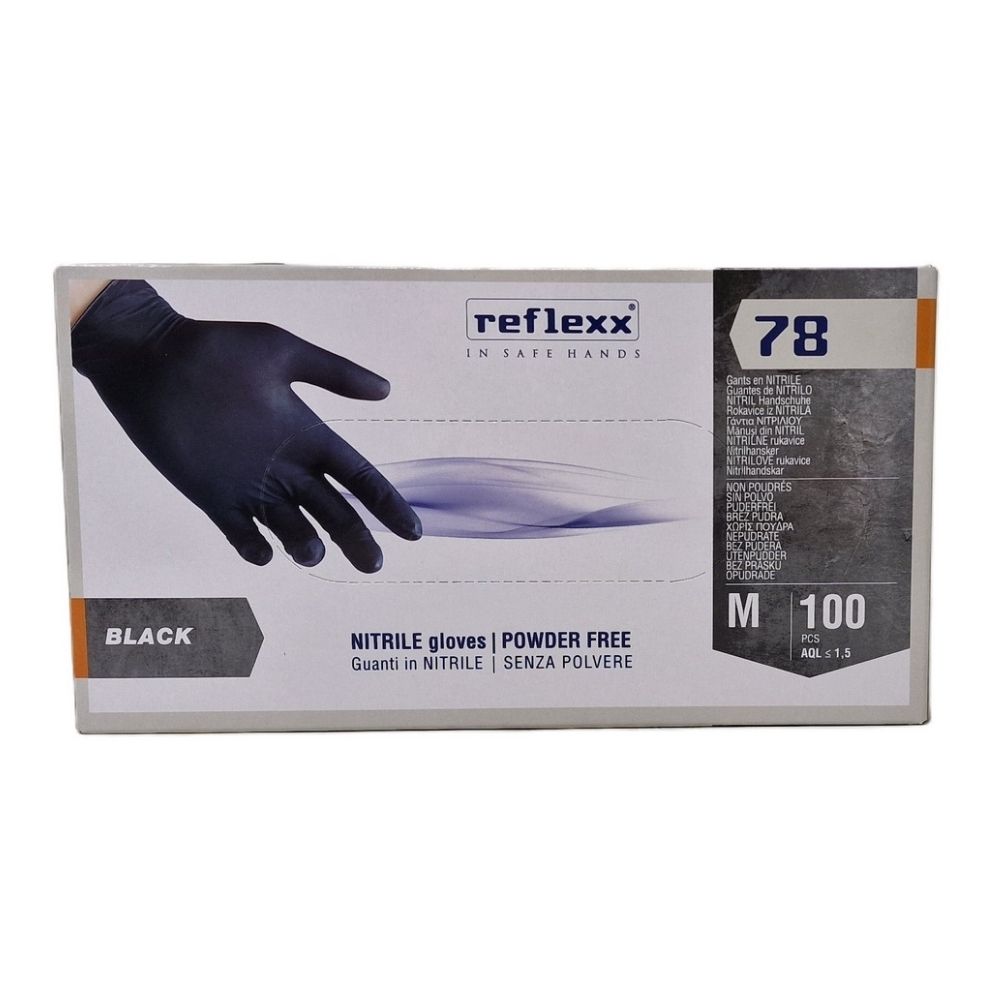 Guanti in nitrile senza polvere nero REFLEXX, taglia M, 100 pz
