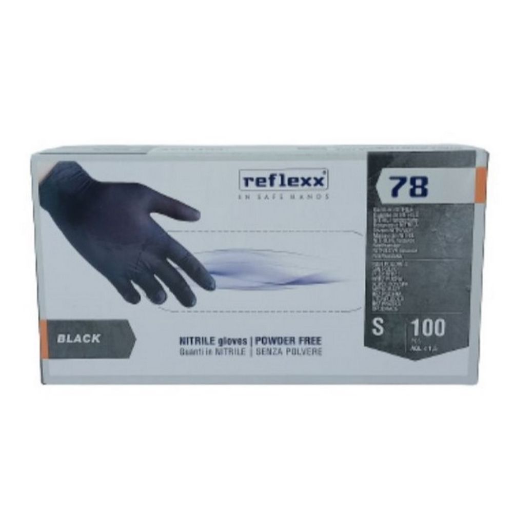 Guanti in nitrile senza polvere nero REFLEXX, taglia S, 100 pz