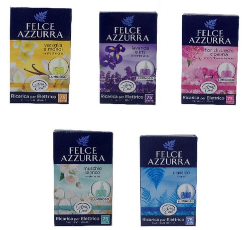 Il diffusore elettrico Felce Azzurra si attacca direttamente alla presa di corrente e diffonde gradualmente un profumo raffinato ed evocativo che riempie la stanza. Nella confezione c'è il diffusore elettrico e una ricarica di deodorante alla fragranza classica.